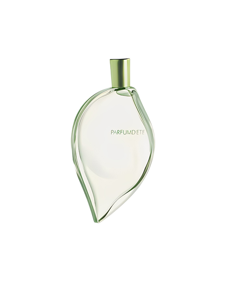 Kenzo crea una ingeniosa y radiante fragancia, para sentir el aroma estival todo el año. Una hoja, sencilla, limpia, depurada, se tumba, capta y refleja la luz del sol, un trozo de verano. Líneas aleatorias, naturales y poéticas, dan a cada frasco una personalidad única. Parfum D'Ete de Kenzo es una fragancia de la familia olfativa Floral Verde para Mujeres. Las Notas de Salida son lirio de los valles (muguete) y notas verdes; las Notas de Corazón son peonía, jazmín y jacinto; las Notas de Fondo son sándalo y almizcle blanco.